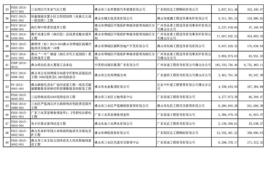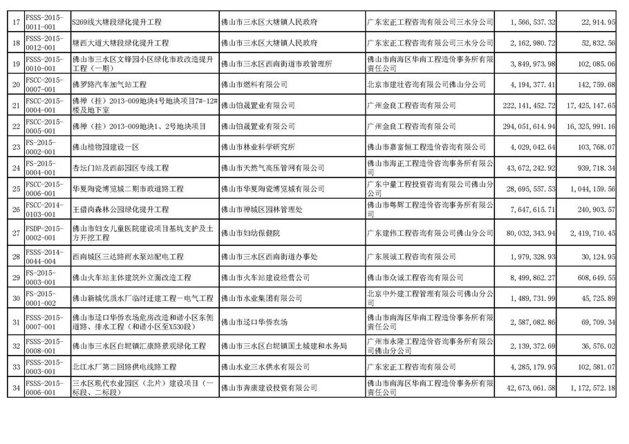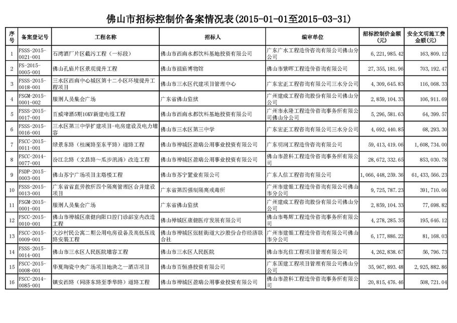 佛山市招标控制价备案情况表(2015-01-01至2015-03-31)