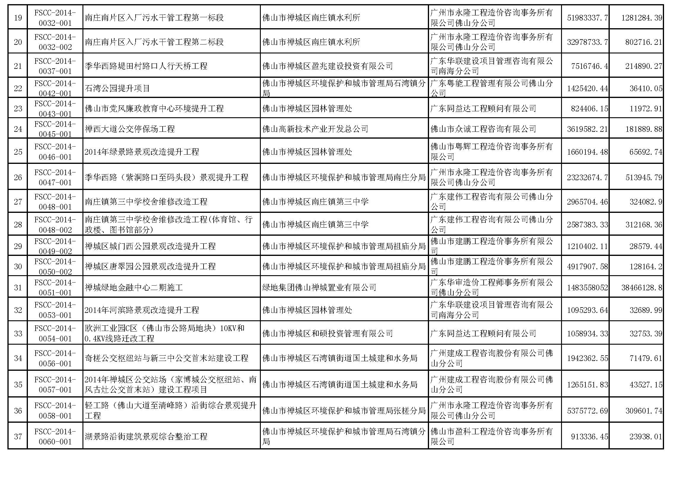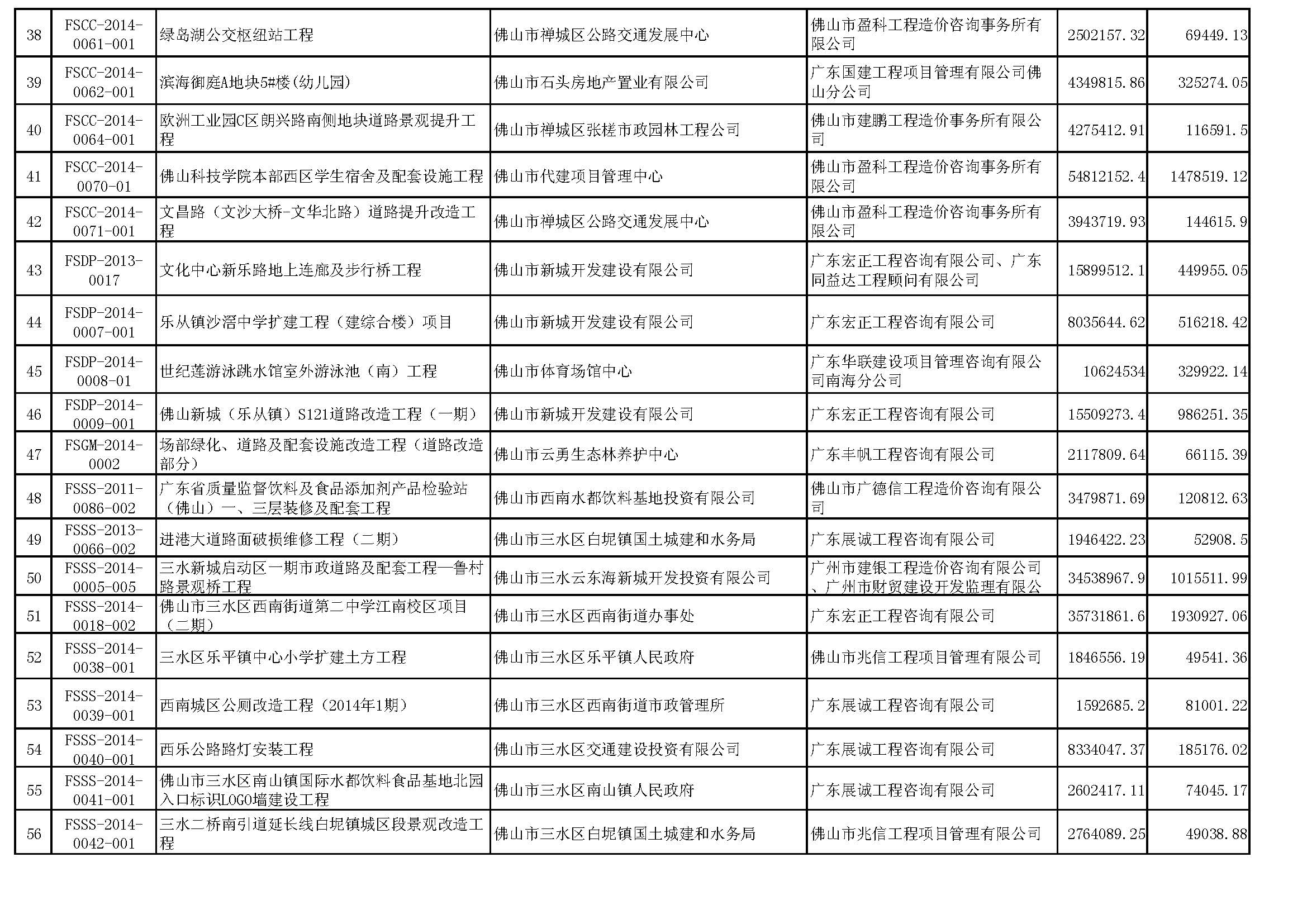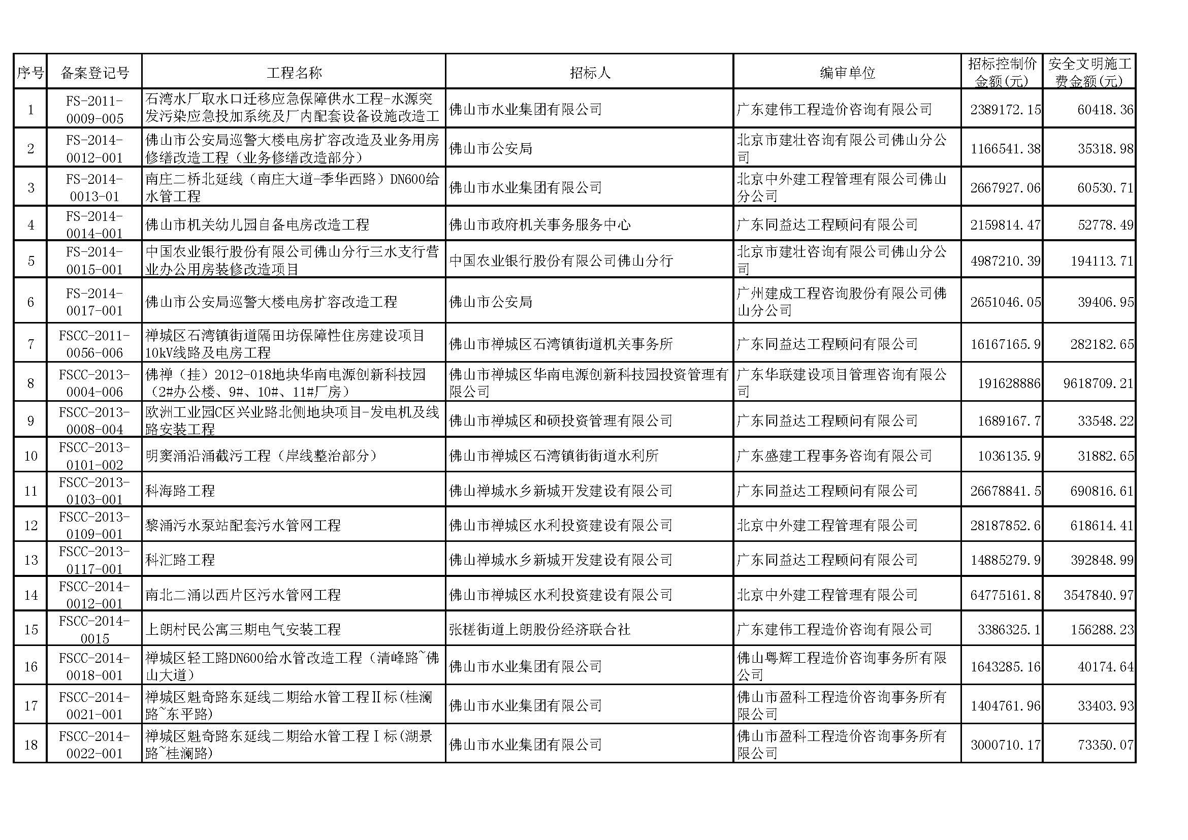 佛山市招标控制价备案情况表(2014-07-01至2014-09-30)