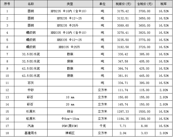 佛山市2017年01月份材料“综合价格”