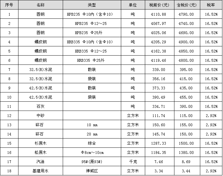 佛山市2017年09月份材料“综合价格”