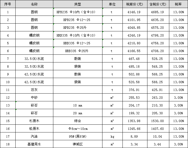 佛山市2019年10月份材料“综合价格”