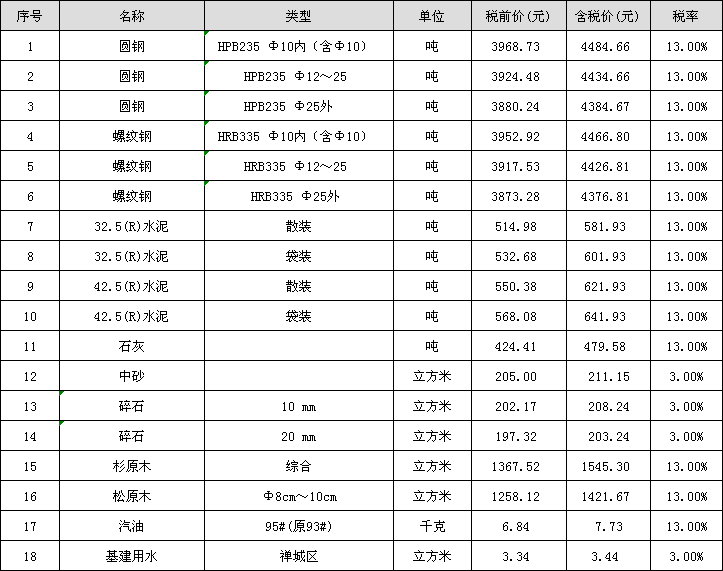 周转材料租赁价格信息