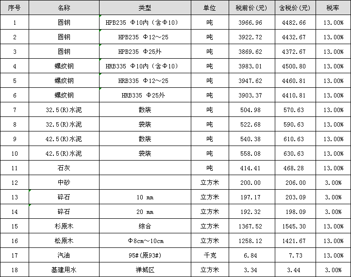 周转材料租赁价格信息