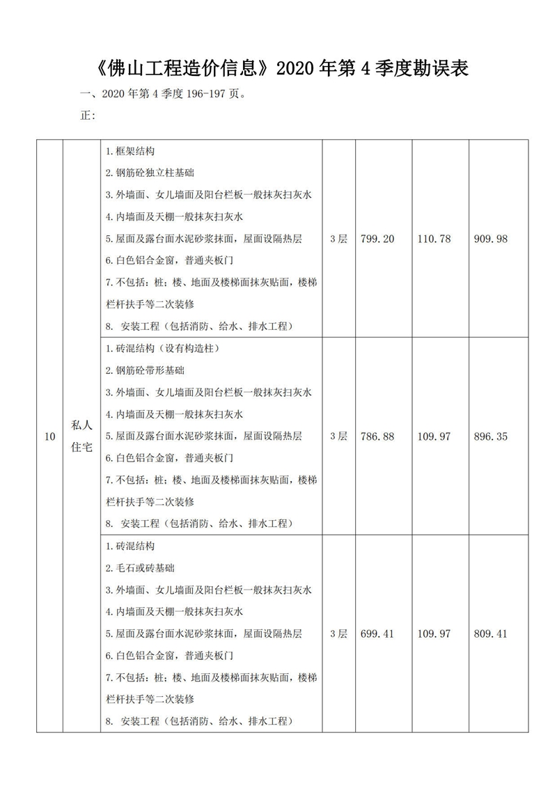 《佛山工程造价信息》2020年第4季度勘误表