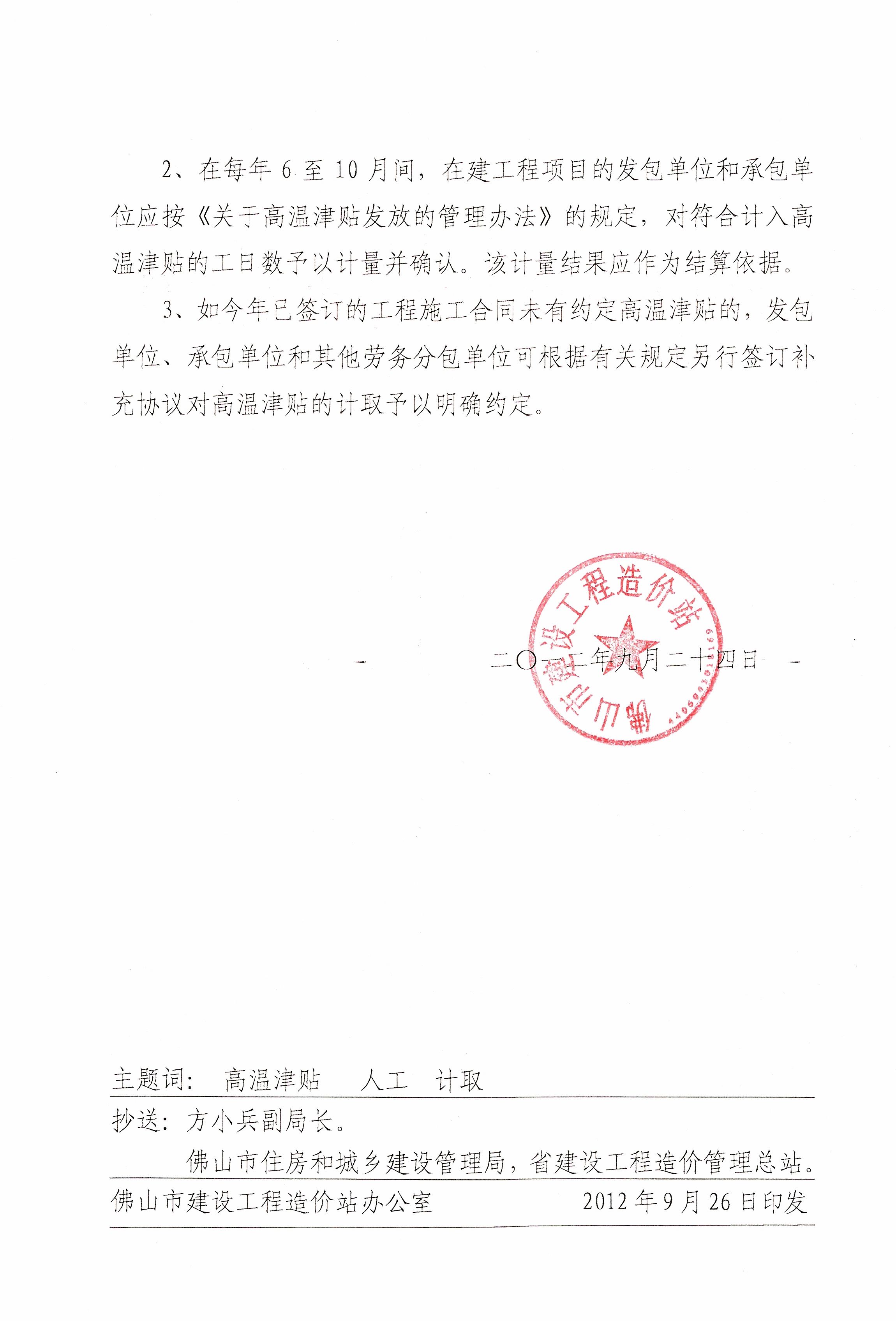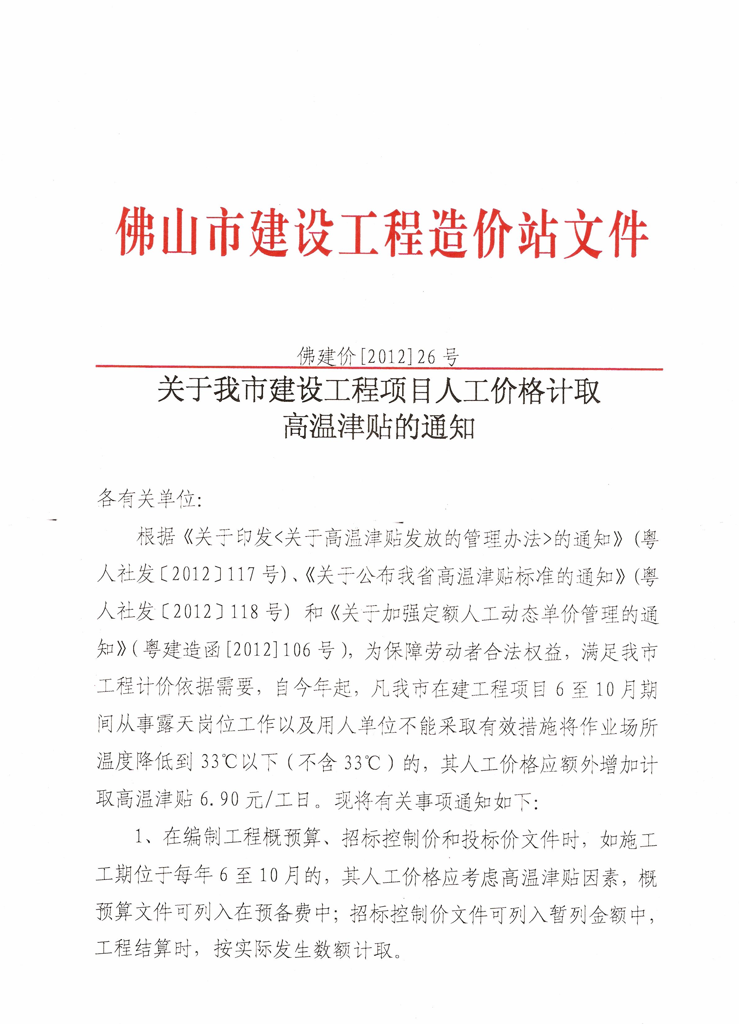 九州在线登录我市建设工程项目人工价格计取高温津贴的通知