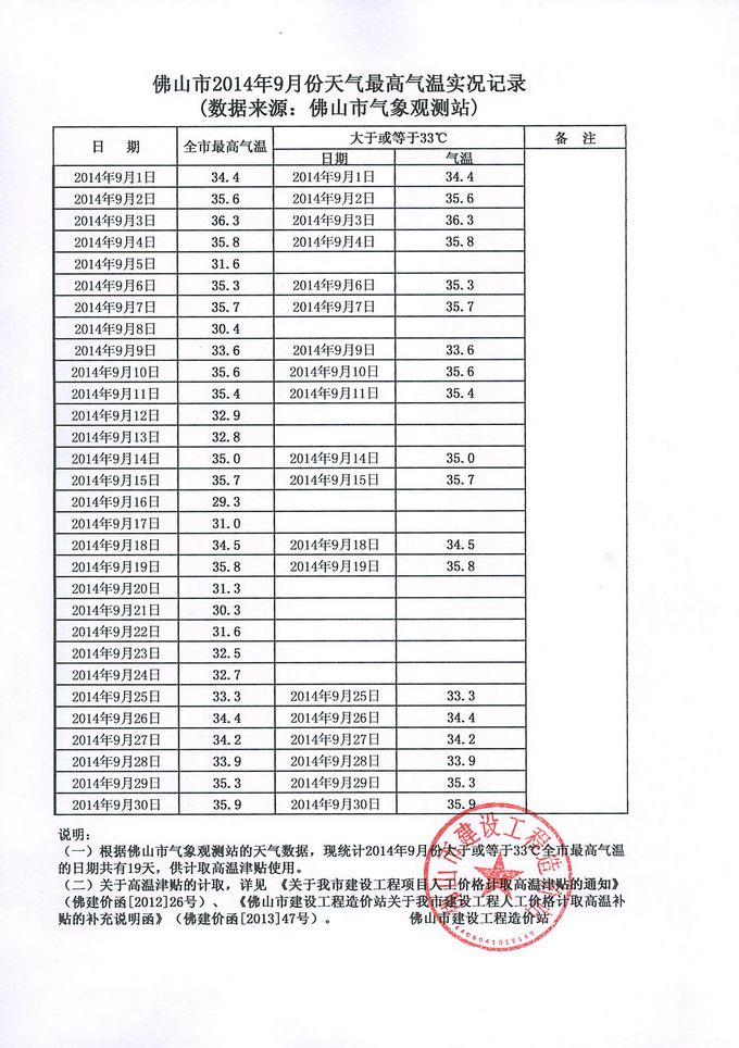 《佛山市建设工程造价站九州在线登录我市建设工程人工价格计取高温补贴的补充说明函》(佛建价函[2013]47号)