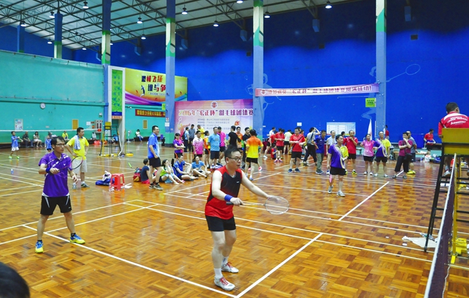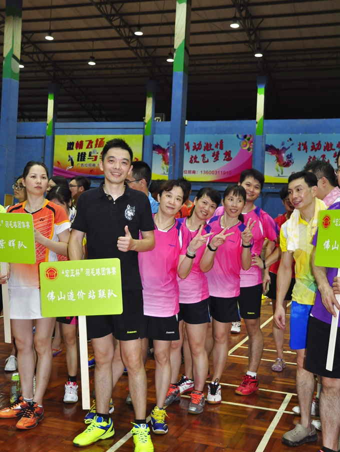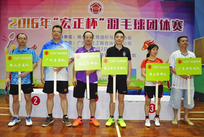7月2日,佛山市工程造价与招标协会在张槎体育馆羽毛球场隆重举行了2016年“宏正杯”羽毛球团体赛。仲夏七月,本应是骄阳似火,也许是老天爷的眷顾,这两天都不时瓢泼着大雨,冲走了暑热,使我们运动员得以更好地发挥。8时许,24支队伍齐刷刷地排好了整齐的队列,进行了简短的开幕式后,在张思中会长和陈敏珊副会长的鼓励声中拉开了比赛的序幕。