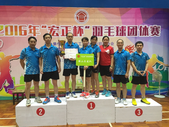 本次比赛,仍按第一阶段采用分组循环赛制,第二阶段采用单淘汰赛及附加赛制。总体水平有了很大提高,竞争比往届都要激烈,如佛山粤辉vs广东中天的女双、广东人信vs广东中天的混双,佛山市造价vs佛山房建的男双,特别是广东宏正vs广州易达的男双尤为激烈,即使是宏正公司的一位运动员出现抽筋的意外,仍然以顽强的毅力坚持到最后。运动员敏捷的身手,娴熟的技巧,时而网前截击,时而巧破千斤,时而大力扣杀,打得酣畅淋漓,白色的羽毛球在空中划出一道道弧线,大家都希望这道弧线到达自己成功的彼岸,精湛的球技让整个赛场高潮迭起。通过一整天紧张的角逐,最终决出了第一名:广东人信咨询有限公司,第二名:广东中天市政工程设计有限公司,第三名:佛山房建公司,第四名:广州易达建信科技开发有限公司,第五名:佛山市粤辉工程造价咨询事务所有限公司,第六名:佛山市建设工程造价站,第七名:佛山市紫晖工程造价咨询有限公司,第八名:广东世纪达装饰工程有限公司。为鼓励更多会员单位积极参与,今年赛委会特增设了第九至十二名优胜奖,获得优胜奖的是:广东宏正咨询有限公司、佛山市住建局、深圳国际招标有限公司佛山分公司、深圳斯维尔科技有限公司,我们对以上获奖的单位表示热烈祝贺!