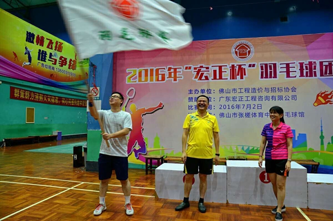 今年正值广东宏正咨询有限公司二十周年华诞,也是本次赛事独家赞助单位,举办这一赛事别有一番意义,在此我们感谢他们的支持!我会的羽毛球比赛连续举办五年了,它是个会员单位展现和交流的平台,这一赛事已成为我会的一张名片,一个品牌,也成为了协会一个欢乐的节日,它的意义已远远超出了比赛的本身。在这里要特别感谢广东省六建公司、广东华联公司南海分公司、广东展诚公司、广东同益达公司、广东中量投资咨询有限公司佛山分公司、佛山新一建公司等单位,他们是忠实的支持者和参与者,他们在赛场上的努力都是一种人生的收获,希望在下一届“粤辉杯”的领奖台上出现他们的身影!在此,我们相约2017年的“粤辉杯”!