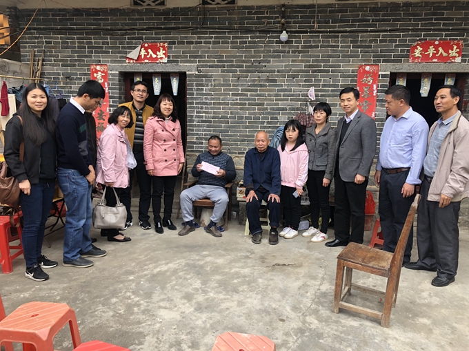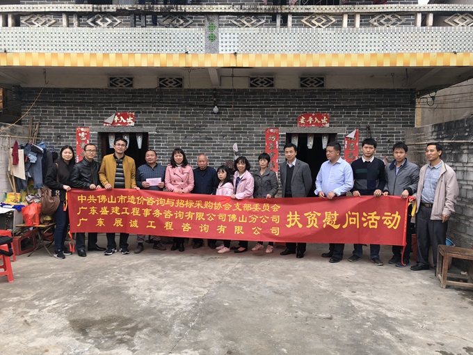 1月15日,我会党支部和广东展诚工程咨询公司、广东盛建工程事务咨询有限公司佛山分公司一行8人在高明区民政局程局长亲自带领下,深入到高明区更合镇白洞村给当地困难户进行扶贫慰问。