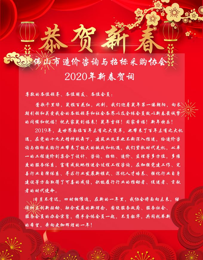 佛山市造价咨询与招标采购协会2020年新春贺词