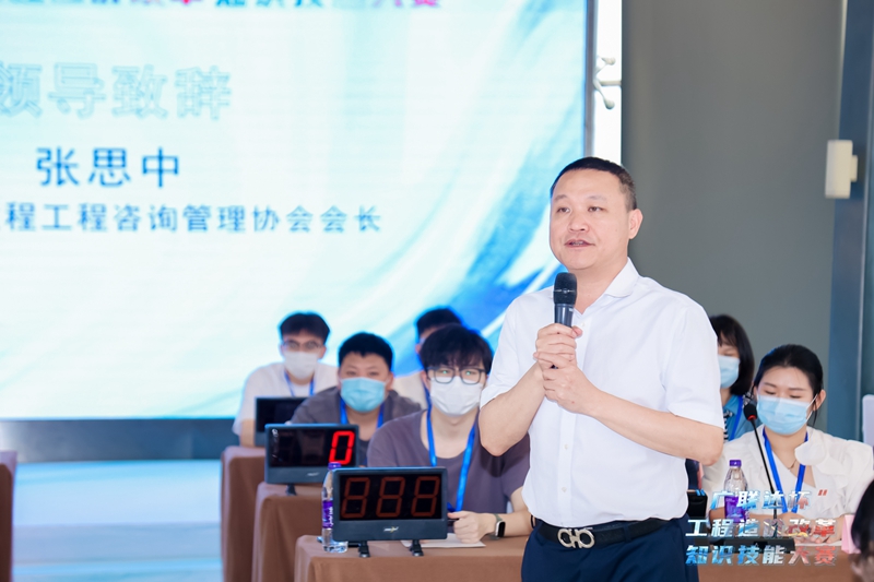 大赛开始前,佛山市全过程工程咨询管理协会会长张思中为竞赛开场致辞。张会长指出,本次知识技能竞赛在多个单位的支持和协助下,为全过程工程咨询专业人员展示技能搭建了一个广阔的平台,引领广大从业者努力成为有理想、守信念、懂技术、会创新、敢担当、讲奉献的高技能人才,同时对参赛选手表达了期望和祝愿,希望各位参赛选手能够赛出水平、赛出风采。