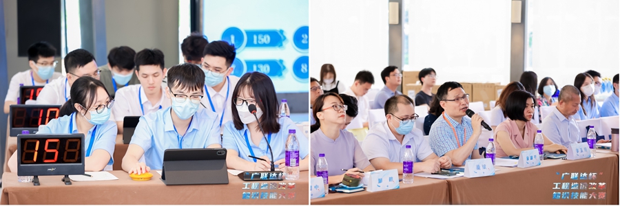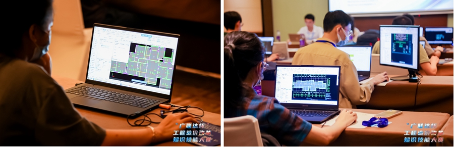 同时,分会场进行了个人技能题组初赛,由广联达提供平台进行土建建模竞赛,内容包括土建专业的GTJ2021算量软件等实操题,最后以工程量表形式提交答案,来自22个单位的参赛选手展开了激烈的角逐。