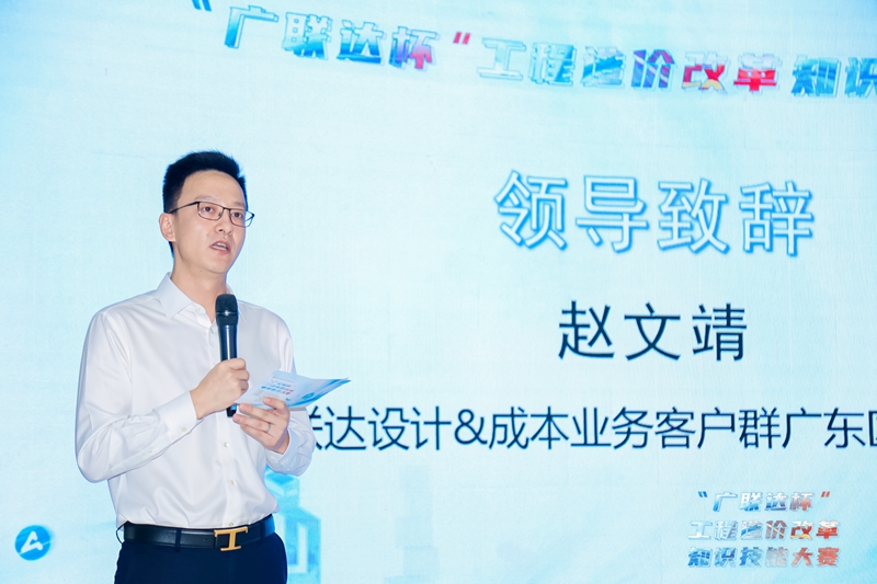 随后,广联达作为大赛协办单位,广联达设计&成本业务客户群广东区域总经理赵文靖进行颁奖致辞,赵总感谢佛山全过程工程咨询管理协会对广联达的信任和认可,广联达作为协办单位,全力提供技术与服务支持。大赛期间也见证了佛山各企业对本次大赛的重视,以及佛山对于打造技能精英大军的的决心,广联达将继续在行业的道路上不断地探索与实践,为佛山的人才梯队建设和降本增效的道路上添砖加瓦!广联达未来愿与更多行业伙伴更深入地交流合作,共同担当数字化转型的重任。
