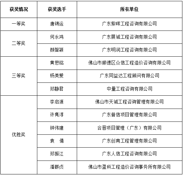 颁奖典礼前,佛山市建设工程造价服务中心主任余建平对参赛选手表现出强烈的竞争意识和高涨的参赛热情表示肯定,并表示,本次大赛促进了行业业务交流,加快了新一代人才梯队成长,推动了传统的造价改革,让各企业向全过程咨询发展,对于佛山高质量人才发展起到了重要的作用,对大赛的圆满举办表示衷心的祝贺。