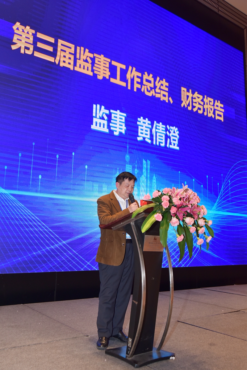 随后,协会监事黄倩澄作第三届监事工作总结及财务报告,汇报了四年来协会监事依据章程开展的各项检查监督工作,对第三届理事会各项工作充分肯定,并对协会的财务状况作了详细报告。