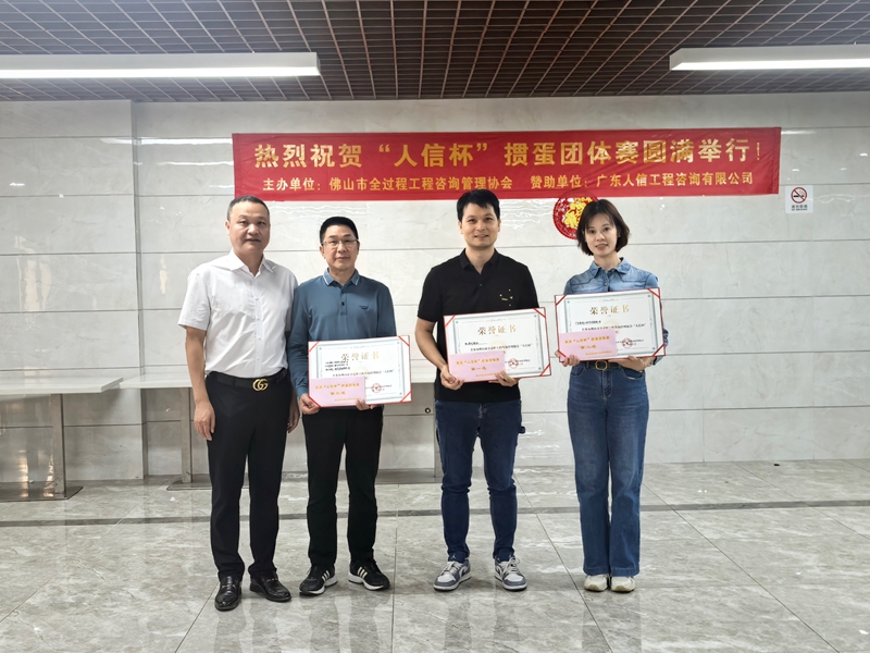 经过一天的激烈角逐,最终佛山造价联队问鼎团体赛冠军,广东展诚工程咨询有限公司获得亚军,广东同益达工程顾问有限公司、广东盛建工程事务咨询有限公司、佛山市新一建筑集团有限公司联队获得季军。获得第四至第八名的队伍分别为:广东创南工程管理有限公司(第四名)、国众联建设工程管理顾问有限公司佛山分公司、广东洋艺建设有限公司联队(第五名)、华联世纪工程咨询股份有限公司(第六名)、佛山轨道交通设计研究院有限公司(第七名)、广东省六建集团有限公司(第八名)。