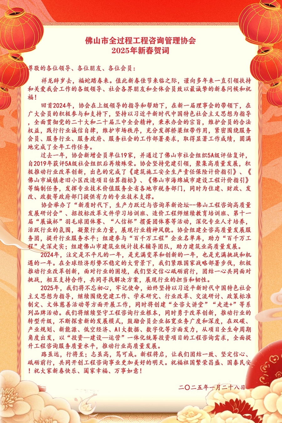 新春贺词 | 佛山市全过程工程咨询管理协会恭祝大家新春快乐,蛇年大吉!