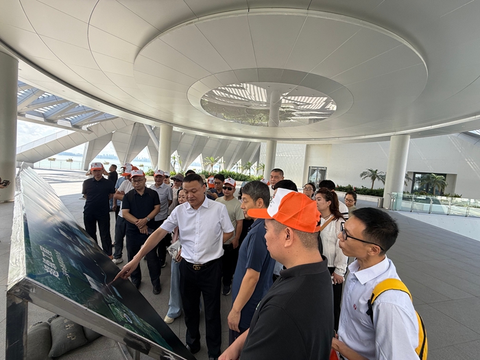 调研组先后参观了深中大桥、西人工岛、海底沉管隧道等深中通道的关键节点,近距离领略“深中巨龙”“湾区脊梁”的魅力。在西人工岛上,工作人员详细介绍了项目从规划设计到建设施工,再到运营筹备的全过程,重点讲解了工程建设中遇到的技术挑战以及创新解决方案,让调研团队对这座超级工程有了更全面、深入的认识。