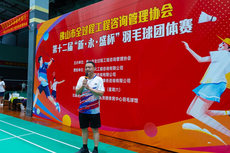 2025年7月5日,张槎体育中心羽毛球馆内气氛热烈,加油声、欢呼声此起彼伏。佛山市全过程工程咨询管理协会2025年第十二届“新·永·盛杯”羽毛球团体赛在此激情上演,来自行业主管部门及协会会员单位的24支代表队,共200多名运动员齐聚一堂,以球会友,展开精彩绝伦的羽毛球竞技。