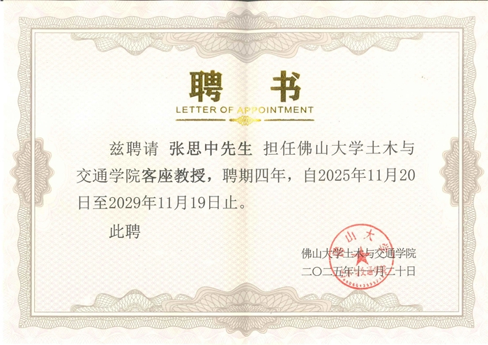 除了讲课外,今天张会长还出席了佛山大学第一届董事会第一次会议,参与学校重大战略的共商共建;并被任命为佛山大学土木与交通学院客座教授。