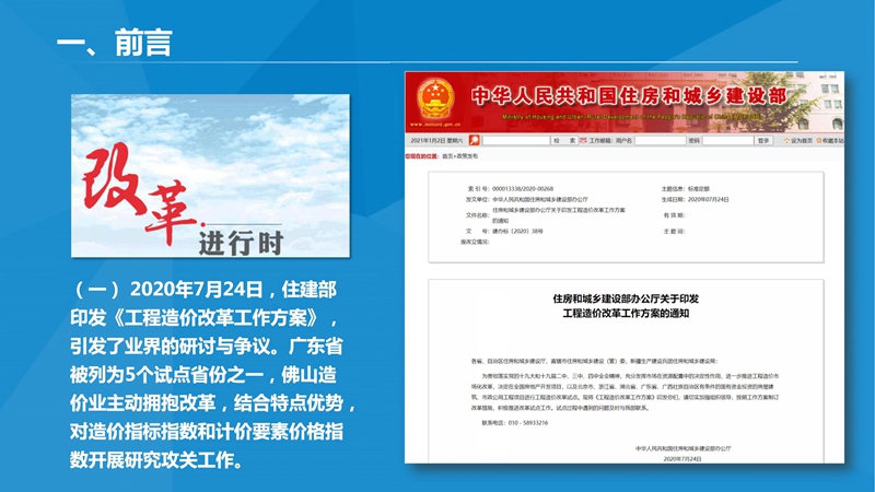 《工程造价改革工作方案》之佛山方案建议