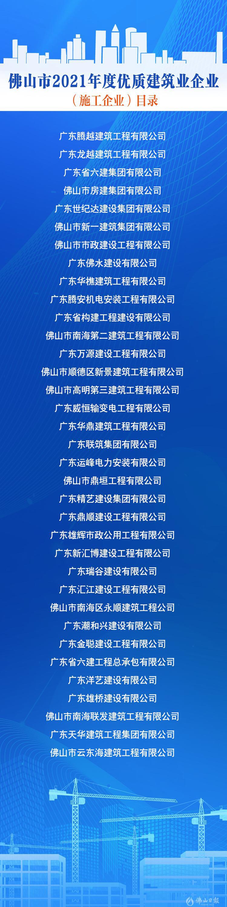 这是佛山首次公布优质建筑业企业(施工企业)目录。