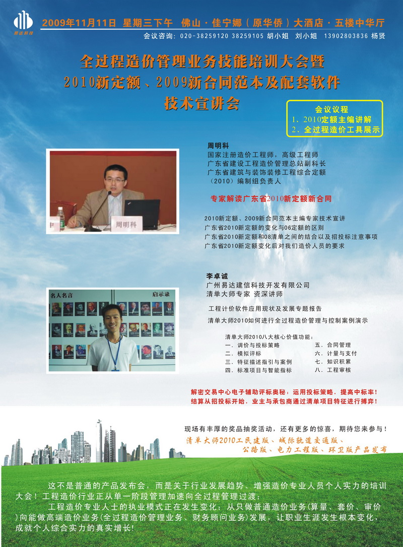 全过程造价管理业务技能培训大会暨2010新定额、2009新合同范本及配套软件技术宣讲会