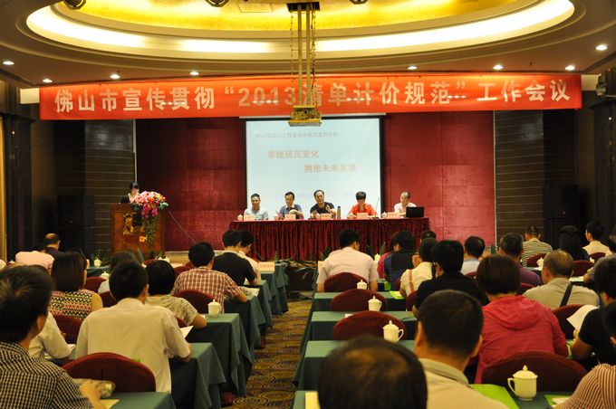 2013年8月16日上午,佛山市宣传贯彻“2013清单计价规范”工作会议在佳宁娜酒店召开,市住建管理局副局长林振汉出席会议并作了重要讲话,省建设工程造价管理总站杨永副站长和赖铭华科长到会作了指示和精彩宣讲,在主席台就坐的还有市住建管理局建筑市场监管科古瑞芳科长和市造价站站长余建平,会议由市造价站黄晓敏副站长主持。全市各区建设主管部门分管领导和主办科室负责人,市发改局、市审计局、市财政局、市代建项目管理中心、各区国土城建和水务局、佛山新城城建局、市水业集团公司、燃气集团公司、铁投公司、工程造价咨询企业、招标代理机构等代表约200人参加了会议。
