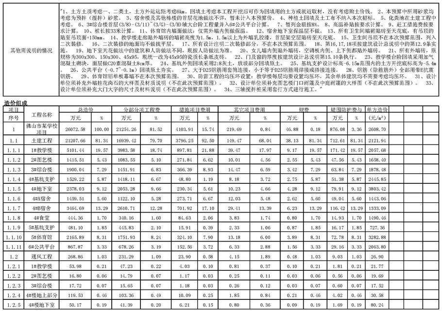 佛山市2015年第3季度技术经济指标分析—某学校项目案例