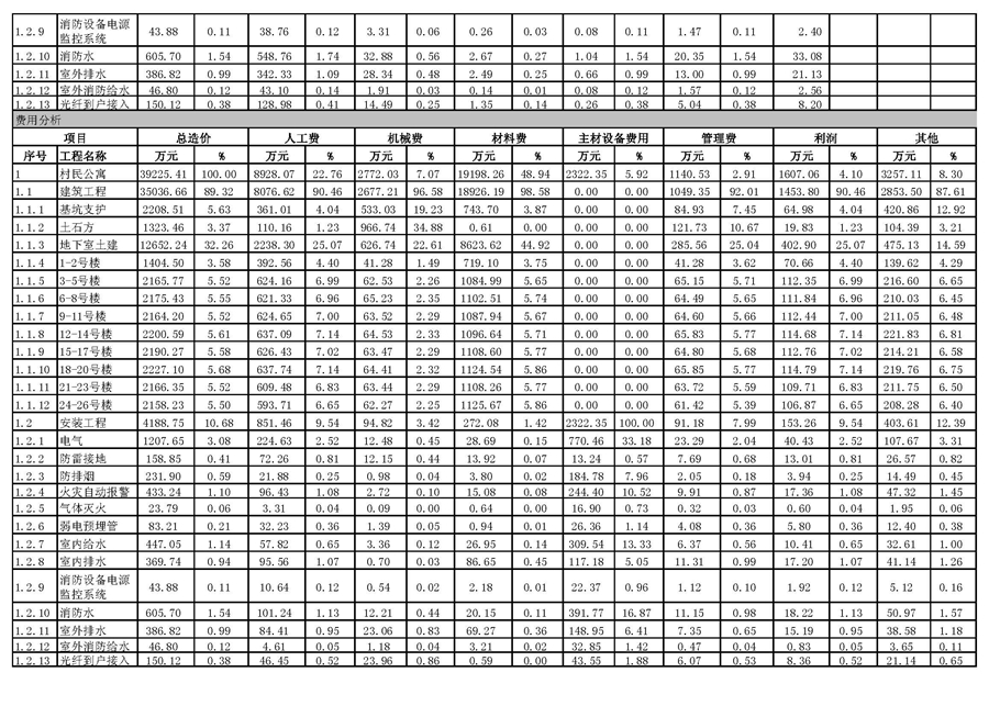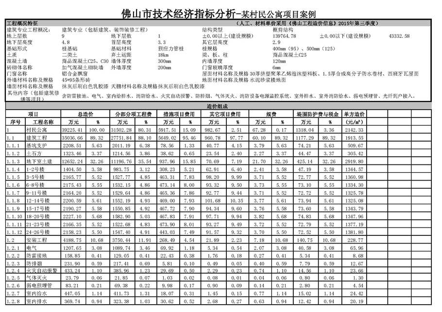 佛山市2015年第4季度技术经济指标分析—某村民公寓项目案例