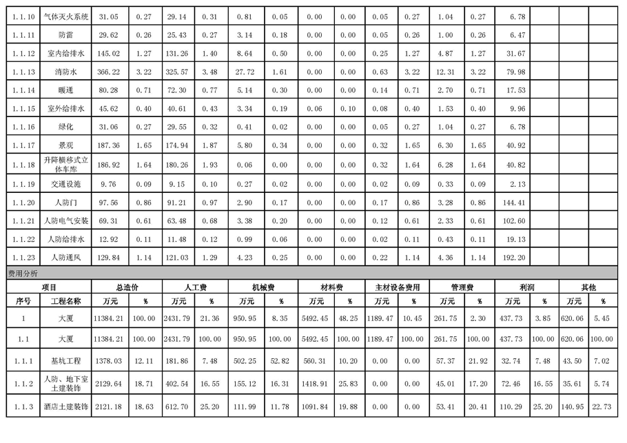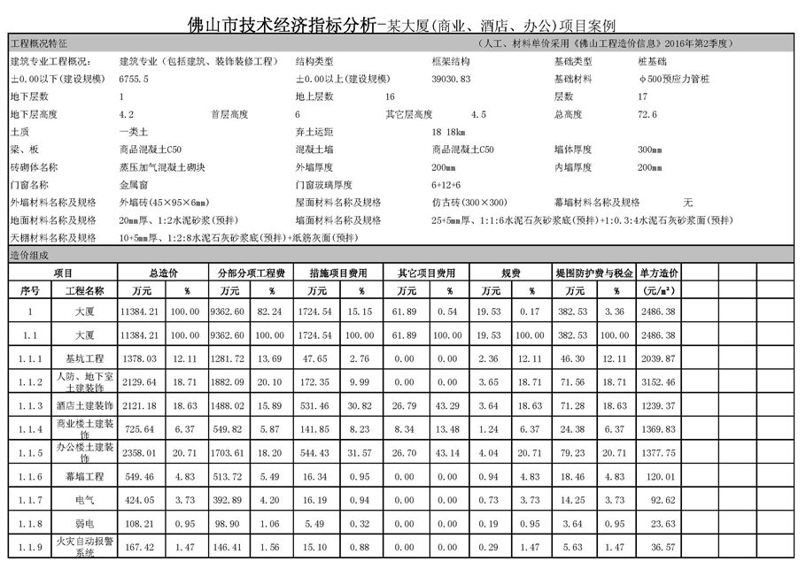佛山市2016年第3季度技术经济指标分析—某大厦 (商业、酒店、办公)项目案例1