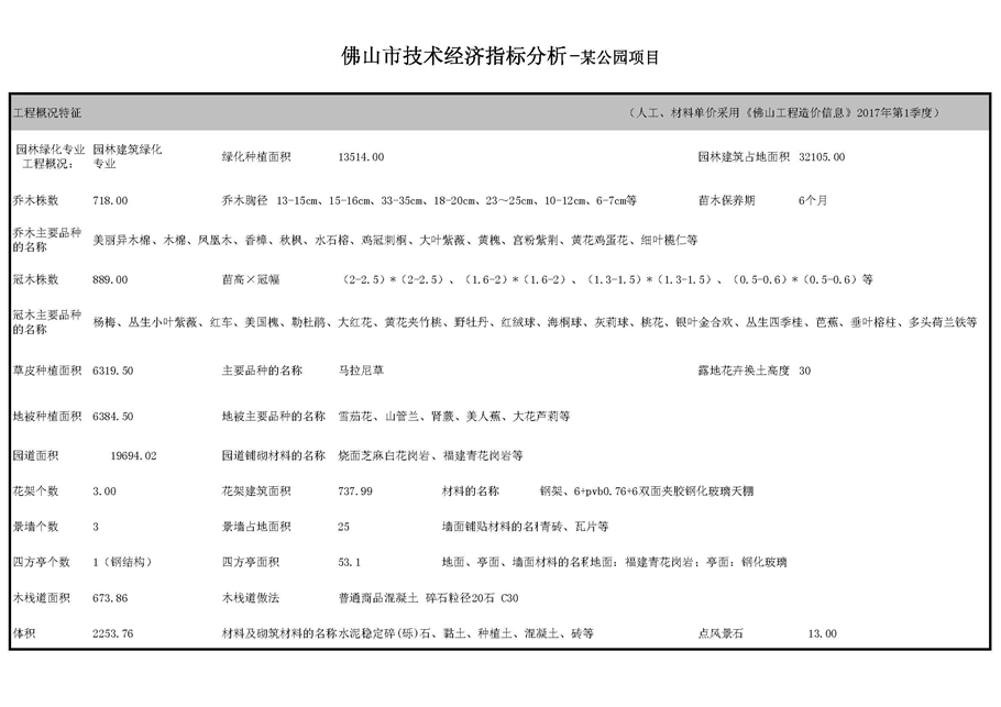 佛山市2017年第2季度技术经济指标分析—某公园项目案例