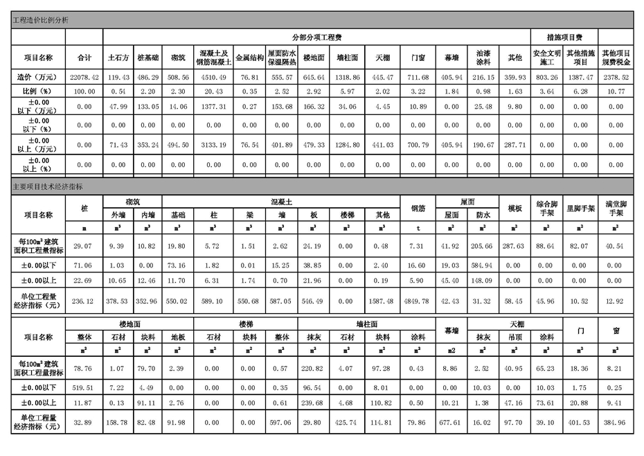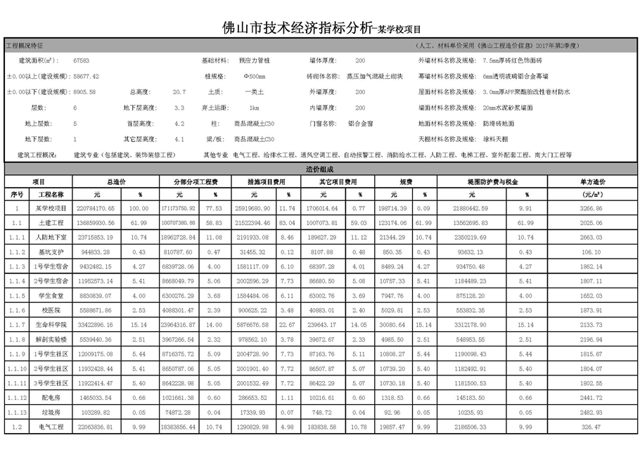 佛山市2018年第1季度技术经济指标分析—某学校项目