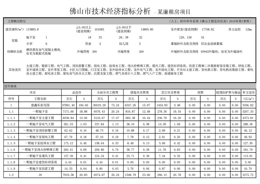 佛山市2019年第2季度技术经济指标分析—某廉租房项目