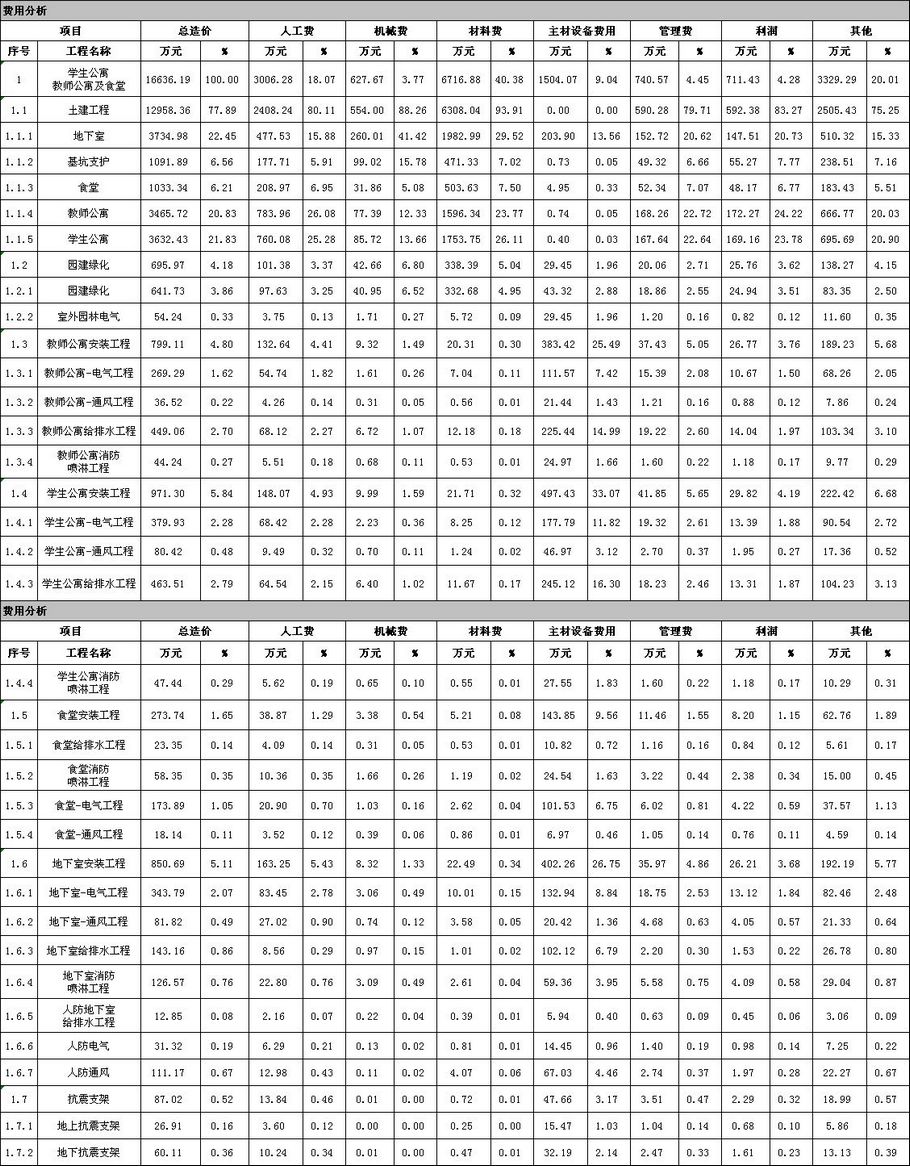 佛山市2020年第1季度技术经济指标分析—某学校学生公寓、教师公寓及食堂项目