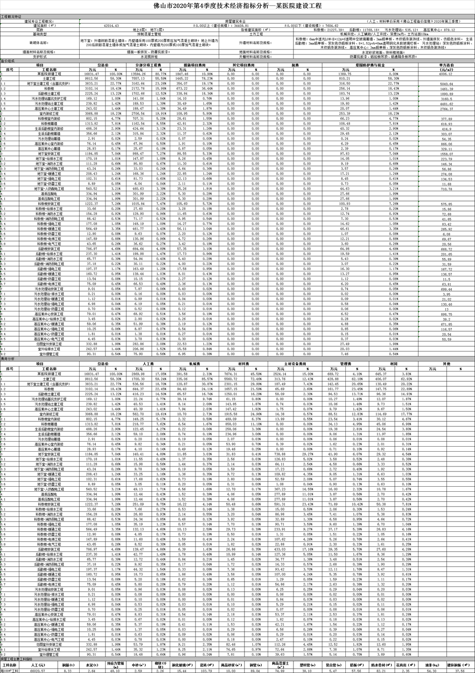 佛山市2020年第4季度技术经济指标分析—某医院建设工程