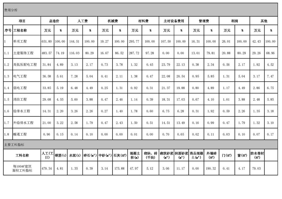 佛山市2015年第1季度技术经济指标分析—某幼儿园项目案例